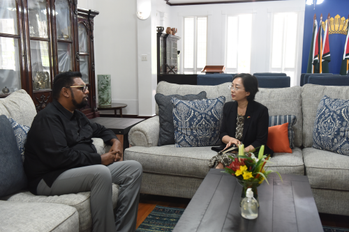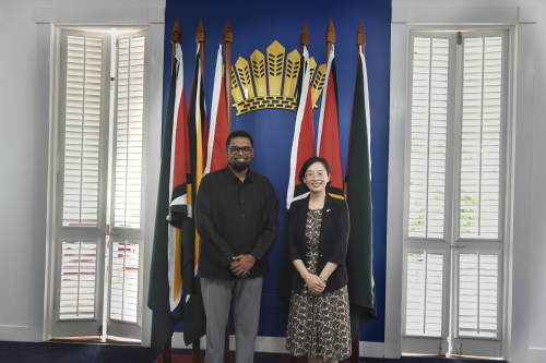 2022年6月20日,驻圭亚那大使郭海燕拜会圭亚那总统阿里,双方就中圭建交50周年系列庆祝活动和双边重要合作进展情况进行了交流。