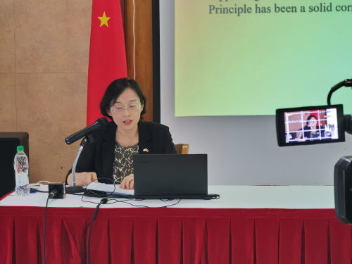 郭海燕大使指出,中圭建交五十年来,两国关系稳步发展、各领域合作成果丰硕。政治上平等相待、相互尊重、相互支持,两国领导人交往不断,2021年,习近平主席与阿里总统通电话,为两国关系发展绘就了新的蓝图。经济上互利共赢、共同发展,经贸合作水平不断提升,中国企业积极参与圭基础设施、能源、矿产、加工业等领域合作,共建“一带一路”取得新的成绩。人文交流上以诚相待,中国通过奖学金、医疗队、人力资源培训、物资捐赠等方式支持圭社会事业发展,两国文化、教育、体育等领域交流活动持续开展,民心不断拉近。