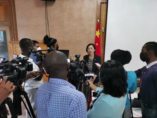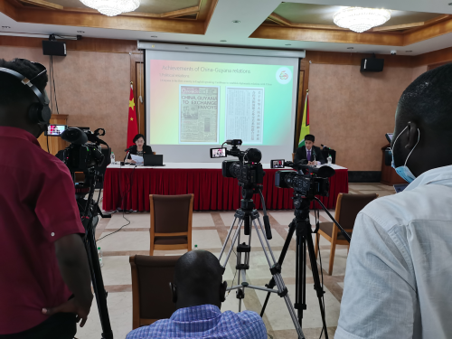 2022年6月20日,驻圭亚那使馆举办中圭建交50周年媒体吹风会,驻圭亚那大使郭海燕介绍中圭建交50年来各领域合作成果,展望两国关系下一步发展。圭新闻署、国家电视台、《纪事报》、《时报》、新闻室网媒等主流媒体记者出席。