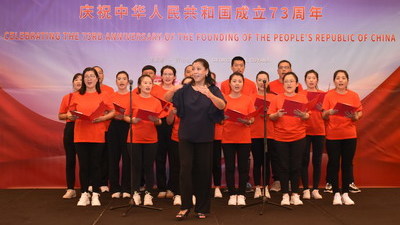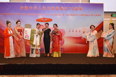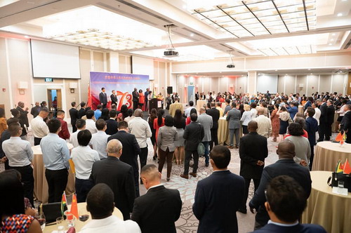 来宾纷纷热烈祝贺中华人民共和国成立73周年,高度赞扬中国发展取得的成就以及中圭友好合作取得的硕果,祝愿中圭关系迈上新台阶,并预祝中共二十大取得圆满成功!
