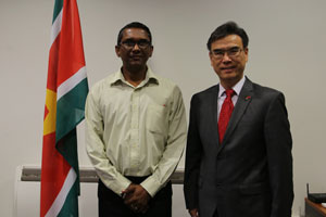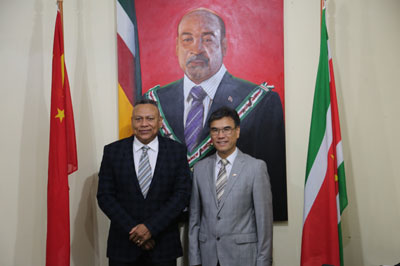 近日,驻苏里南大使张晋雄分别辞行拜会苏国防部部长本绍普、农牧渔业部部长苏尔詹、劳工部部长穆斯塔加及教科文部部长菲丽尔女士。