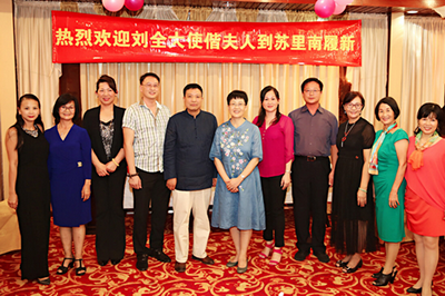 晚宴气氛热烈,刘大使夫妇与旅苏侨胞亲切交谈,共叙深厚情谊,并与各侨团代表合影留念。