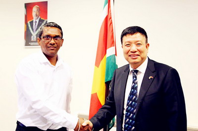 2018年8月29日,驻苏里南大使刘全到任拜会苏里南农业、牧业和渔业部长苏尔詹,双方就中苏关系和共同关心的议题交换意见。