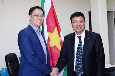 2018年8月29日,驻苏里南大使刘全到任拜会苏里南贸工旅游部长曾锦荣,双方就中苏经贸合作和共同关心的议题交换意见。