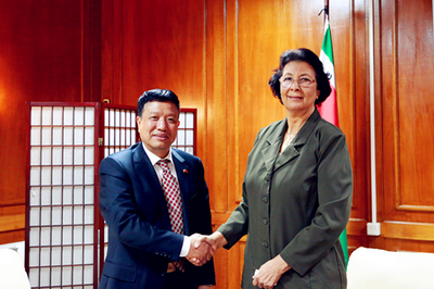 2018年8月30日,驻苏里南大使刘全前往苏里南国民议会拜会国民议会议长珍妮弗·西蒙斯。苏国民议会秘书长露特·德温特等在座。