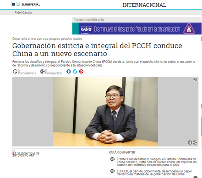 近日,委内瑞拉主流媒体《宇宙报》在网站上整版刊登赵本堂大使署名文章《全面从严治党,开创中国特色发展新局面》。署名文章全文如下: