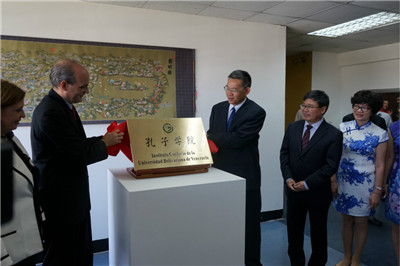 2016年12月16日上午,由委内瑞拉玻利瓦尔大学和江苏常州大学合作建立的委首所孔子学院在加拉加斯玻利瓦尔大学总部隆重举行揭牌仪式。中国驻委内瑞拉大使赵本堂、委部长理事会副主席兼计划部长梅嫩德斯、委高教部副部长巴雷托、常州大学党委书记浦玉忠、玻利瓦尔大学校长汉森、外交部亚大司司长罗德里格斯、委政府机构官员、玻利瓦尔大学师生代表、新闻媒体等近300人出席活动。