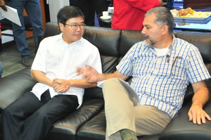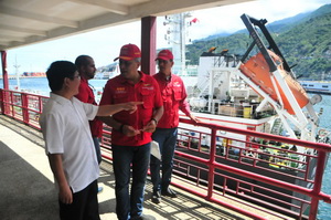 仪式前,赵大使与莫利纳部长简短会谈并参观拉瓜伊拉港及拖曳船队。