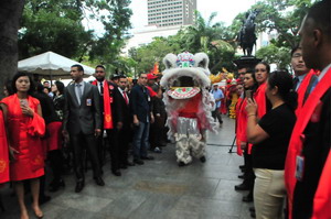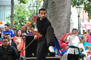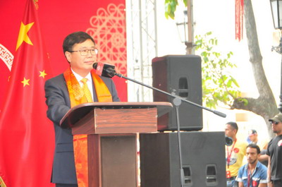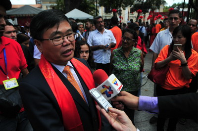 2017年1月28日,驻委内瑞拉使馆在首都大区解放者市玻利瓦尔广场举行首届“欢乐春节庙会”。驻委内瑞拉大使赵本堂、委外交部长德尔西·罗德里格斯、解放者市市长豪尔赫·罗德里格斯、外交部副部长普拉森西亚、文化部副部长伊拉迪等委政府高层、使馆馆员和家属、孔子学院师生、来委参加“欢乐春节”巡演的国内艺术家代表团以及驻委外交使团代表、华侨华人代表、中外新闻媒体和当地民众1000余人出席庙会开幕式。