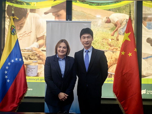 2023年5月26日,驻委内瑞拉大使蓝虎拜会委部长理事会副主席兼科技部长希门尼斯,双方就两国科技领域交流合作交换意见。