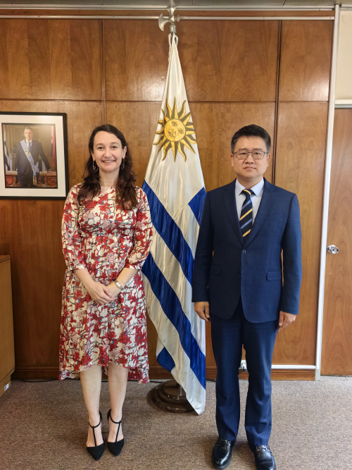 2025年10月16日,驻乌拉圭使馆临时代办何飞拜会乌代外长苏卡西。