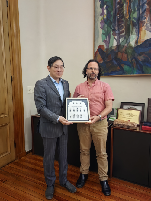 2025年12月19日,驻乌拉圭大使黄亚中会见乌共和国大学新任校长坎塞拉,就深化两国教育、科技、文化等领域合作及加强人才交流等议题交换意见。
