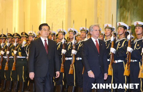 | 国家主席胡锦涛在北京人民大会堂北大厅为乌拉圭总统巴斯克斯访华举行欢迎仪式 |