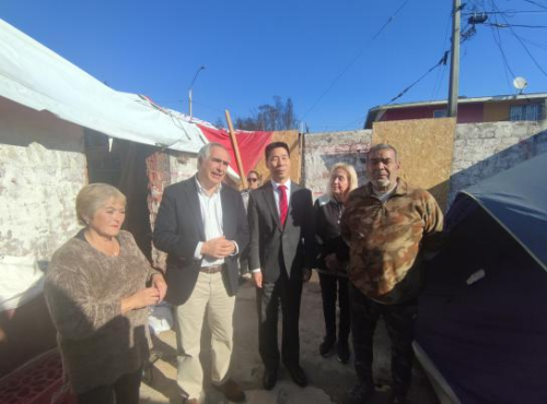 2024年5月9日,驻智利大使牛清报出席使馆向维尼亚德尔玛市和基尔普埃市受夏季火灾影响社区捐赠应急房屋材料交接仪式,受到当地群众的热烈欢迎。