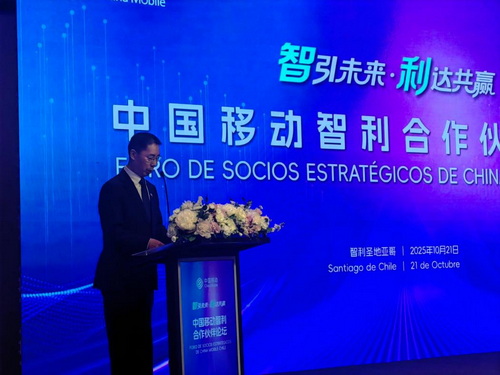 2025年10月21日,中国移动智利公司成立仪式在圣地亚哥举行,驻智利大使牛清报应邀出席并致辞。智利交通与电信部电信副部长办公室主任吉列尔莫·彼得森、中国移动集团副总经理张冬以及移动智利公司合作伙伴、中资企业代表近百人参加活动。