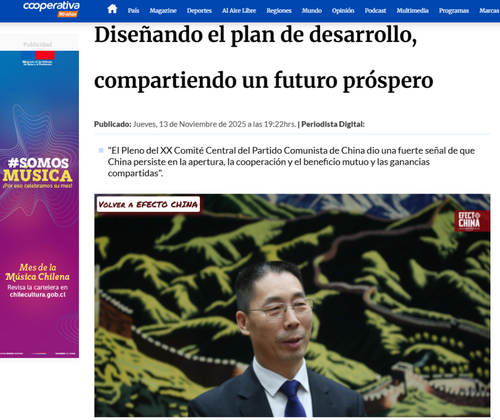 2025年11月13日,驻智利大使牛清报在智利合作社电台网站“中国现象”栏目撰文,宣介党的二十届四中全会精神和“十五五”规划建议。全文如下:
