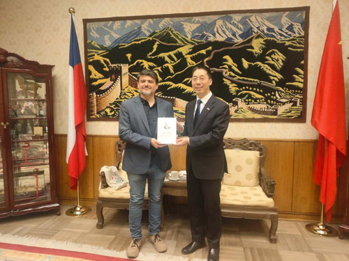 2026年1月12日,驻智利大使牛清报会见首都大区中央火车站市市长穆尼奥斯一行,就社会治理、地方交往等交换意见。