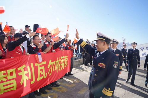 2026年3月1日,中国海军“丝路方舟”号医院船抵达智利瓦尔帕莱索。驻智利大使牛清报、智海军人事总局长阿雷纳斯海军中将,在智中资企业及华侨华人代表等近百人前往欢迎。