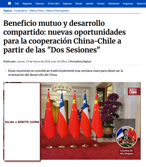 2026年3月19日,驻智利大使牛清报在智利合作社电台网站发表题为《互利共赢、共享发展——从全国两会看中智合作新机遇》的署名文章,围绕全国两会释放的新信息,阐释中智合作的新机遇,全文如下: