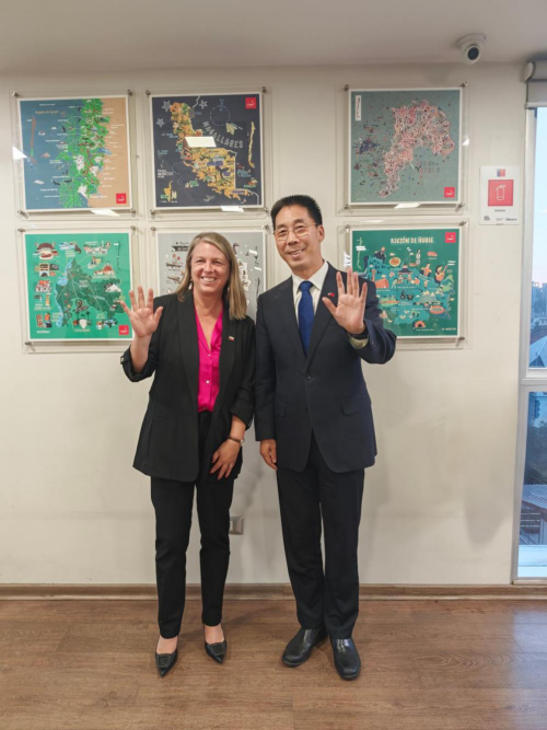 2026年4月8日,驻智利大使牛清报拜会智利经济、发展、旅游部旅游副部长拉戈斯,就中智旅游领域合作交换意见。