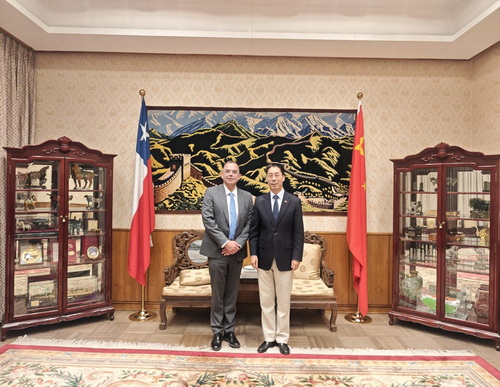 2026年4月2日,驻智利大使牛清报会见智利邮政总经理利伯曼。双方就加强中智电商邮政合作交换意见。