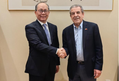 2023年10月19日,中国政府拉美事务特别代表邱小琪会见来华出席第三届“一带一路”国际合作高峰论坛民心相通专题论坛的智利前总统弗雷。