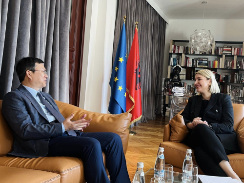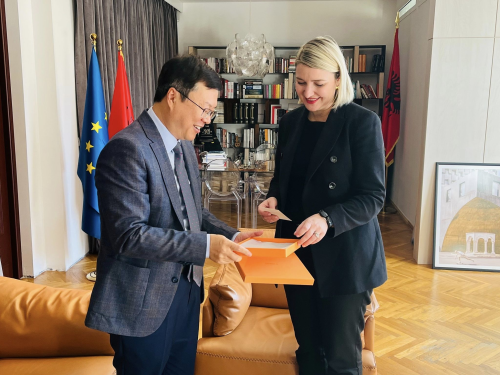 2023年2月9日,驻阿尔巴尼亚大使周鼎拜会阿尔巴尼亚文化部长马加里蒂,双方就中阿关系和两国人文交流合作等深入交换意见。