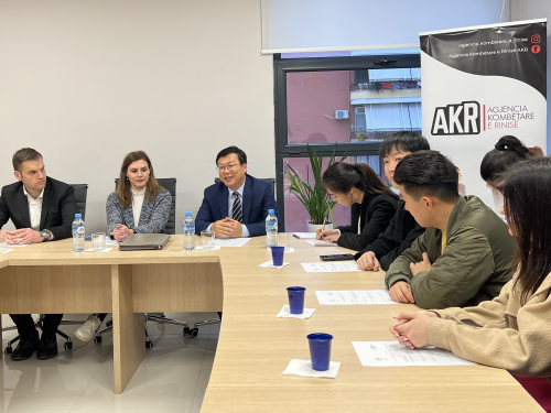 2023年3月6日,驻阿尔巴尼亚大使周鼎访问阿尔巴尼亚国家青年署,与阿青年和儿童事务国务部长穆扎奇、国家青年署署长库希共同会见中阿两国青年代表,并向阿方捐赠智慧办公设备。