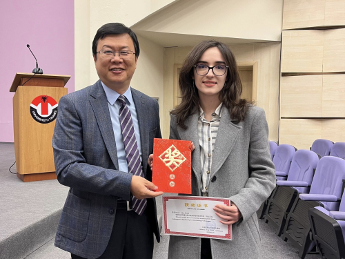 周大使表示,很高兴出席一年一度的中国大使奖学金颁发仪式。地拉那大学孔子学院成立十年来,积极有效开展汉语教学和中华文化推广,已成为中阿友好的重要桥梁,谨对孔院工作取得的卓越成绩和每位学生收获的进步与成长表示祝贺,并对各位老师和志愿者的辛勤付出表示赞赏和感谢。汉语是了解中国和中华文化的窗口,希望同学们继续享受学习汉语的乐趣,更多了解真实立体的中国,并成为传承中阿传统友谊和促进两国互利合作的使者。祝大家学业顺利,前程似锦!