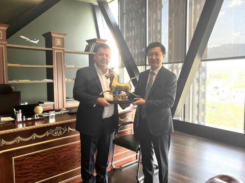2023年8月14日,驻阿尔巴尼亚使馆临时代办王德鑫参访阿尔巴尼亚知名旅游企业VAS集团,并同集团总裁梅赫梅蒂就推进新时期中阿旅游合作深入交换意见。