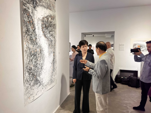 2025年9月22日,驻阿尔巴尼亚大使庞春雪出席“天涯若比邻”中国画家作品展开幕式,阿文化、旅游和体育部相关负责人、地拉那艺术大学校长巴卡利、中国画家吴军、林朝阳、驻阿使节等各界人士100余人出席活动。