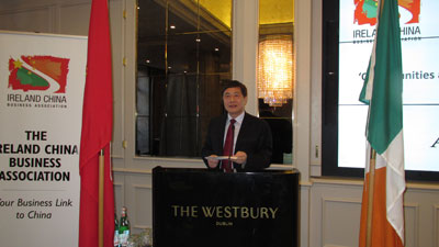 徐大使积极评价ICBA为促进爱中两国经贸关系所做的努力,希望两国企业界继续加强业务对接和务实合作。他在致辞中表示,2015年,在国际经济复苏乏力、国内产业升级转型的大背景下,中国经济实现了6.9%的增速,各领域取得丰硕成果,实属不易。中爱经济具有较强互补性,两国政府应深挖合作潜力,让更多合作成果惠及两国人民。