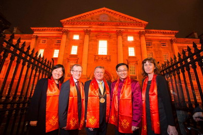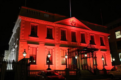 当晚,都柏林市长官邸、市政厅、市政府办公大楼、都柏林会展中心、圣三一大学等12处标志性建筑均以“中国红”灯光照亮,喜迎中国农历鸡年的到来。