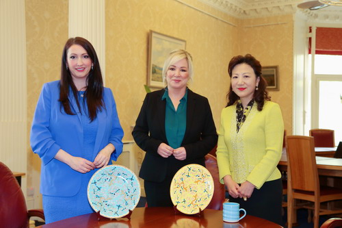 2024年5月3日,驻贝尔法斯特总领事张美芳拜会英国北爱尔兰首席部长奥尼尔和副首席部长彭杰利。
