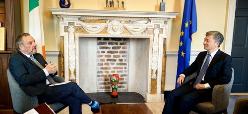 2024年5月2日,驻爱尔兰大使何向东在爱尔兰议会会见参议长布蒂默。