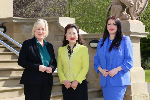 2024年5月8日,驻贝尔法斯特总领事张美芳拜会英国北爱尔兰首席部长奥尼尔和副首席部长彭杰利。