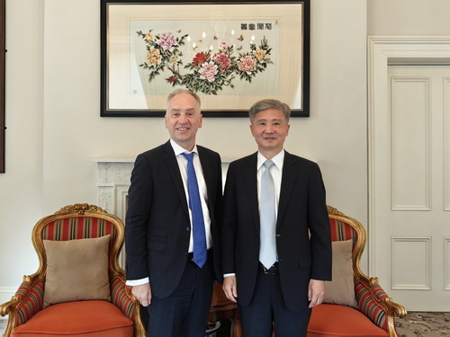 2024年6月7日,驻爱尔兰大使何向东会见爱尔兰候任驻华大使欧博仁。