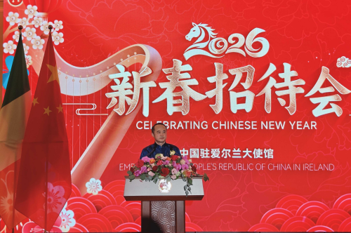 2026年2月7日,驻爱尔兰使馆在都柏林举办“温暖迎春· 共庆中国年”2026年新春招待会。驻爱尔兰大使赵希源,在爱华侨华人、中资机构、留学生代表等300余人欢聚一堂,共庆新春。