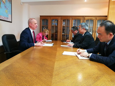 2020年2月7日,驻白俄罗斯大使崔启明在白俄罗斯外交部会见白主管副外长达普丘纳斯。双方就中白关系、共同防控新冠肺炎疫情等交换意见。