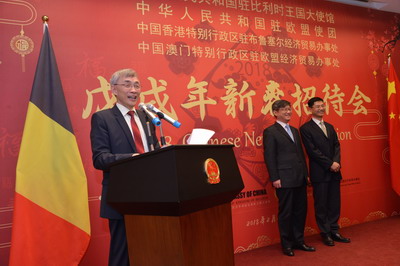 2018年2月25日,驻比利时使馆举行2018年华侨华人新春招待会,旅比华侨华人、中资机构、留学生、国内驻比媒体等300余人出席。