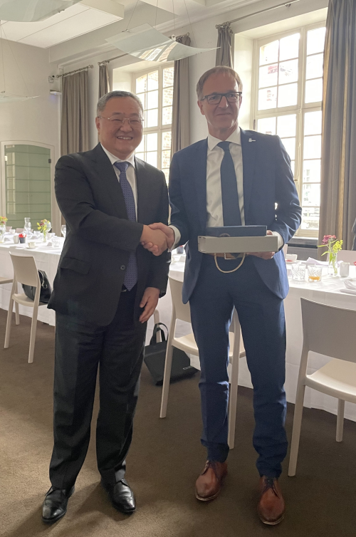 2023年7月5日,驻欧盟使团团长傅聪大使访问比利时根特大学,会见比利时根特大学校长德瓦勒教授和外事副校长胡伦布洛克教授,并同该校东亚合作平台部分学者及在校中欧博士生和研究人员代表就欧洲学界对华认知、中欧教育交流和科研合作等议题深入交流。