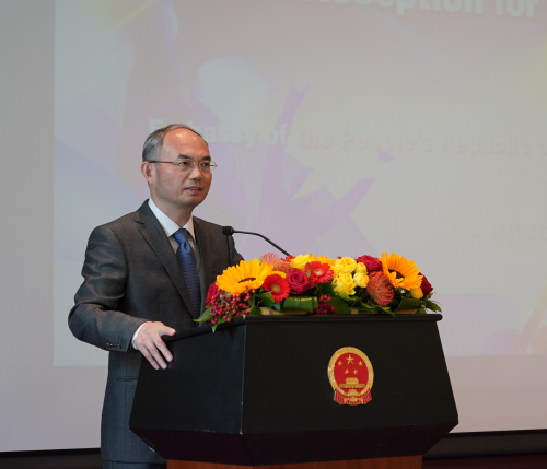 曹大使发表欢迎致辞,鼓励留学生们在华期间勤奋学习,亲身体验中国的发展和中华优秀传统文化,致力于促进中比友好关系。