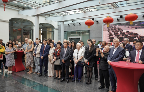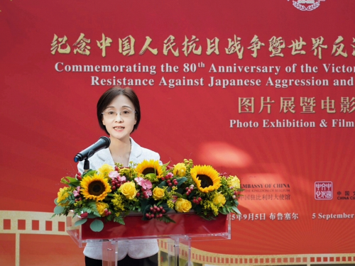 2025年9月5日,驻比利时使馆举办纪念中国人民抗日战争暨世界反法西斯战争胜利80周年图片展暨电影周开幕式。驻比利时使馆临时代办李艳出席并致辞,比各界人士共130余人参加。