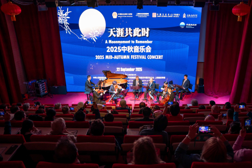 2025年9月22日,2025“天涯共此时”中秋音乐会在布鲁塞尔中国文化中心举行,驻比利时使馆临时代办李艳出席并致辞,上海音乐学院党委书记裴小倩、比各界代表、驻比使节等160余人参加活动。