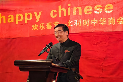 2026年2月17日,驻比利时大使费胜潮在博特梅尔贝克市出席比利时中华商会春节团拜会暨华裔青年大联欢,巴尔特市长出席。