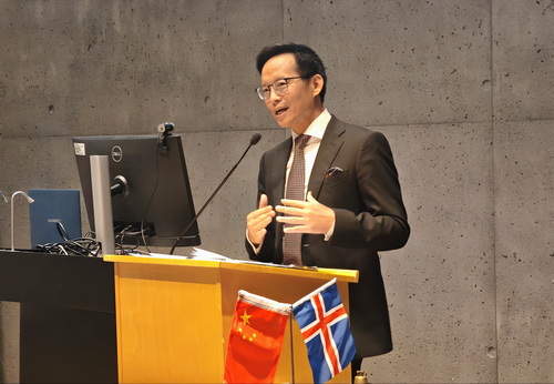 2025年10月8日,驻冰岛大使何儒龙出席由冰岛中国贸易促进会举办的“地缘政治与商业变局:冰中贸易关系的未来”主题研讨会并致闭幕辞。
