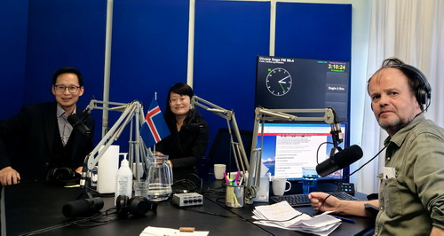 2025年10月30日,驻冰岛大使何儒龙接受冰岛萨迦电台(Útvarp Saga)一小时直播专访,就托马斯多蒂尔总统访华成果、中冰关系等答问。