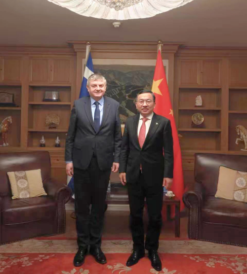 2026年3月24日,驻希腊大使方遒会见波黑驻希腊大使武克齐,就中波关系、国际地区局势等交换意见。