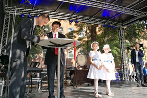 2016年9月10日,驻丹麦大使刘碧伟及夫人方淳应邀前往距首都哥本哈根约70公里的霍尔拜克市出席首届“霍尔拜克丝路童话中国文化节”开幕式并致辞。霍尔拜克市市长雅思高、文化节组委会主席维斯特高、泉州市政法委书记许昆贞、旅丹华人华侨留学生、霍尔拜克及周边城市市民逾千人出席了活动。开幕式上,霍尔拜克与泉州正式签署了友好城市协议。