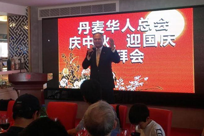 2016年9月11日,驻丹麦大使刘碧伟和夫人方淳应邀出席丹麦华人总会举办的“2016庆中秋迎国庆团拜会”。旅丹华侨华人代表160余人参加活动。